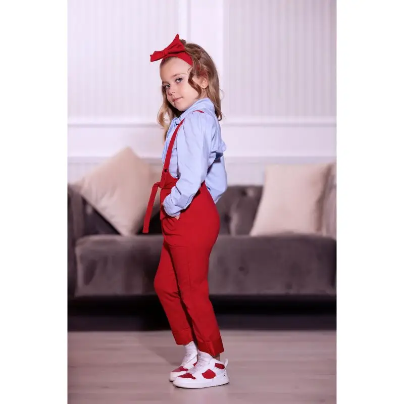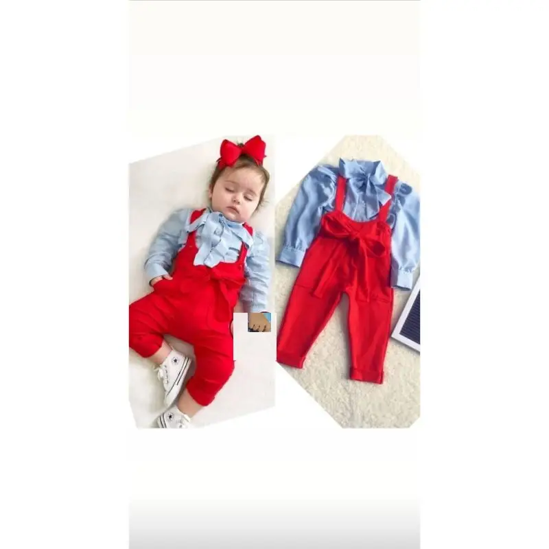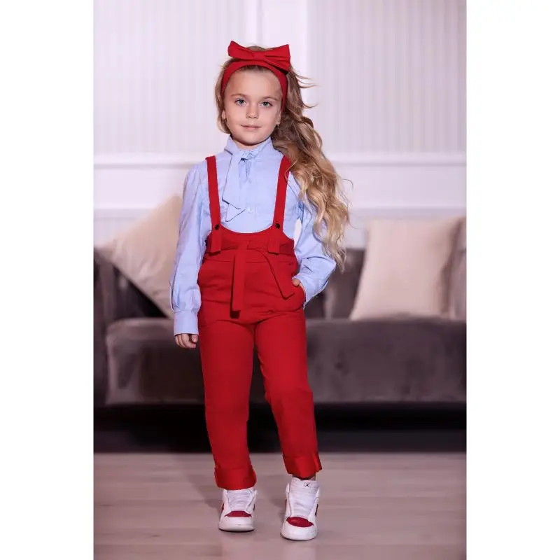 Ürün yaka bağlamalı gömlek, düğme ayarlamalı bağcıklı tulum ve bandanadan oluşmak üzere 3 parçadır.