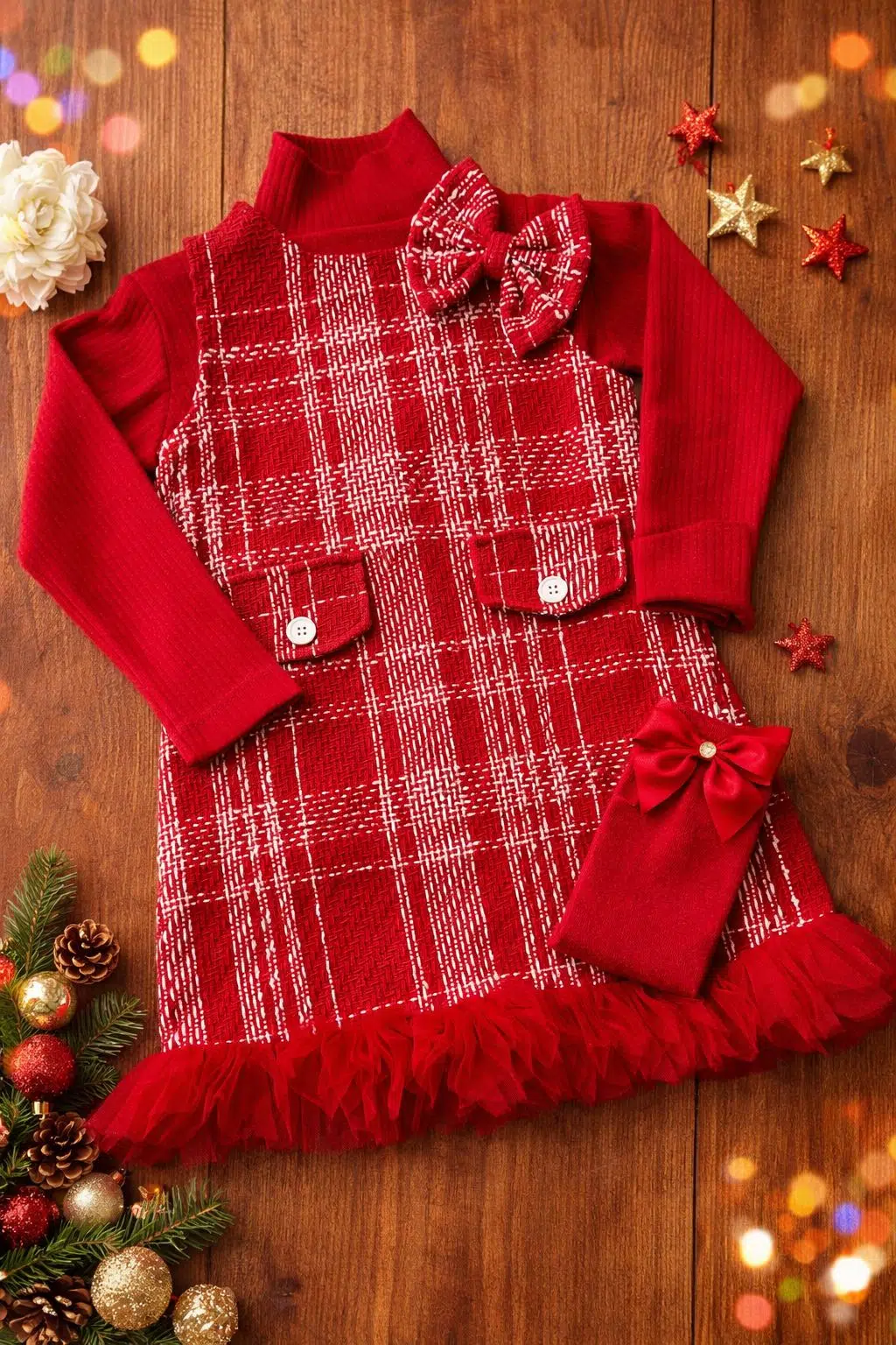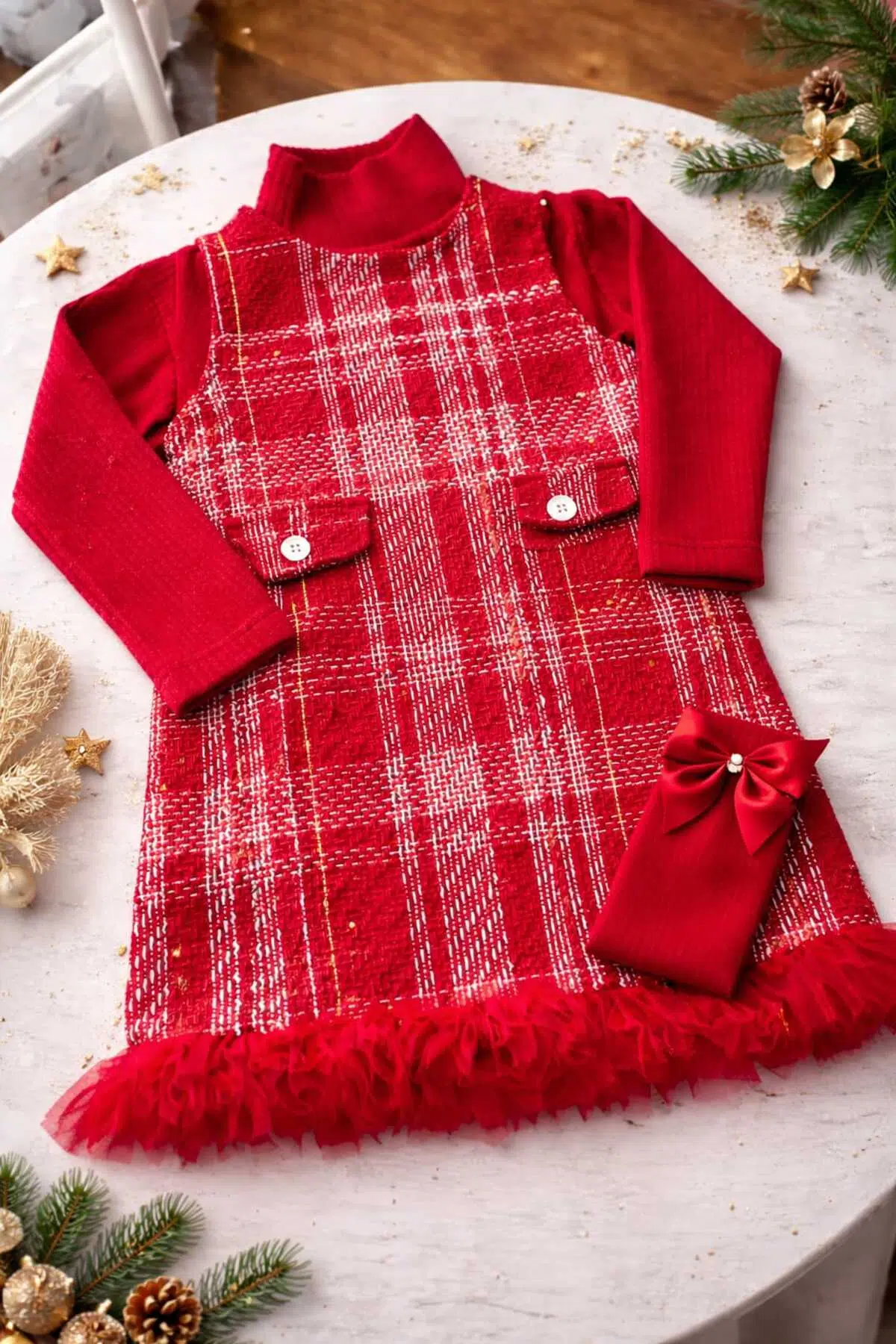 MODAVALS CHANEL ELBİSE KAŞKORKE BADİ TOKA & ÇORAP 4 PARÇA KIZ BEBEK & KIZ ÇOCUK ELBİSE