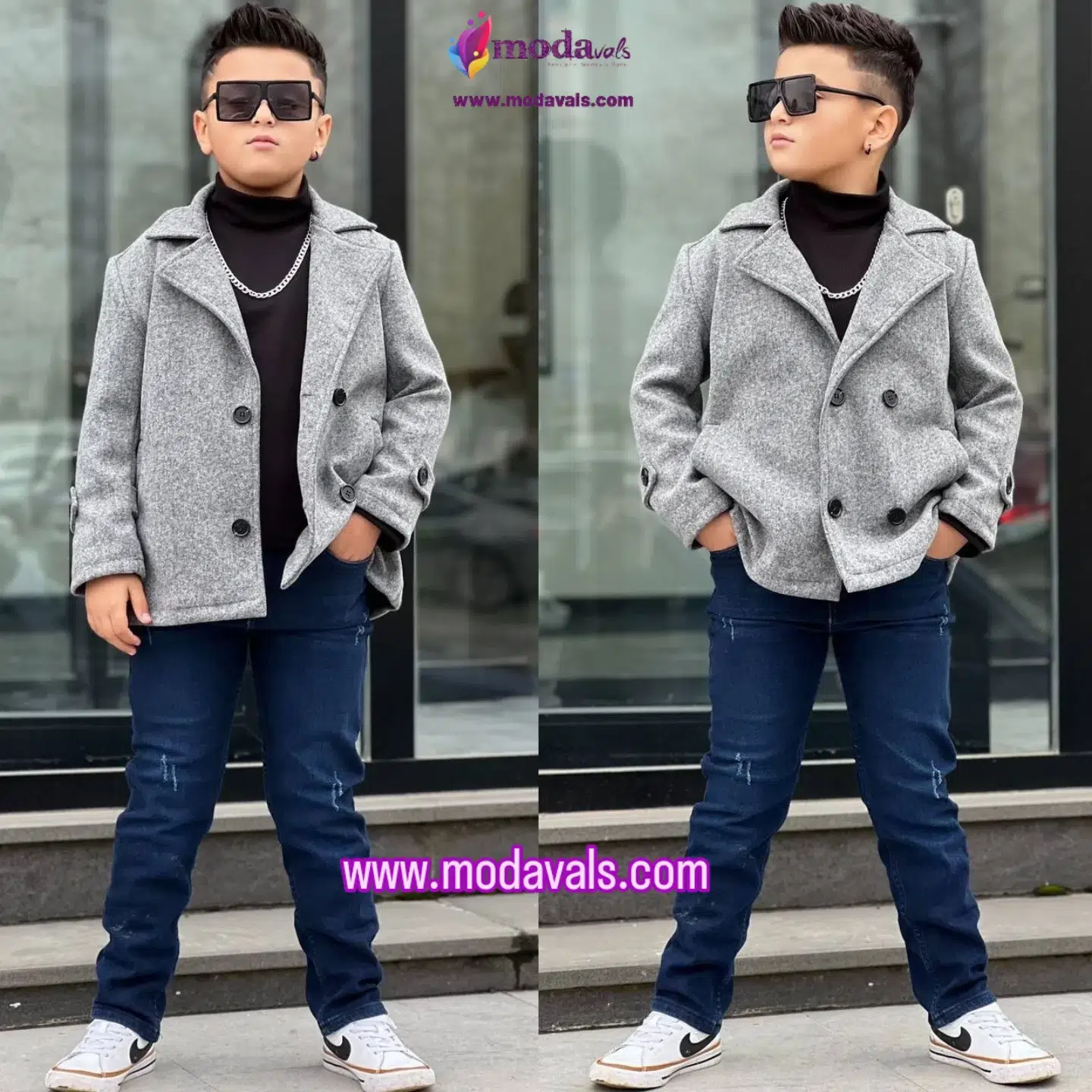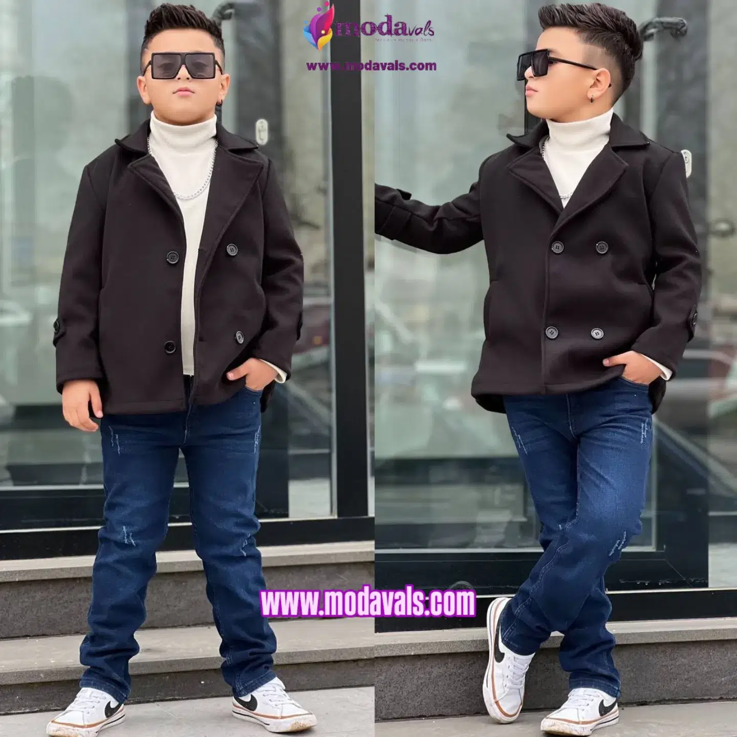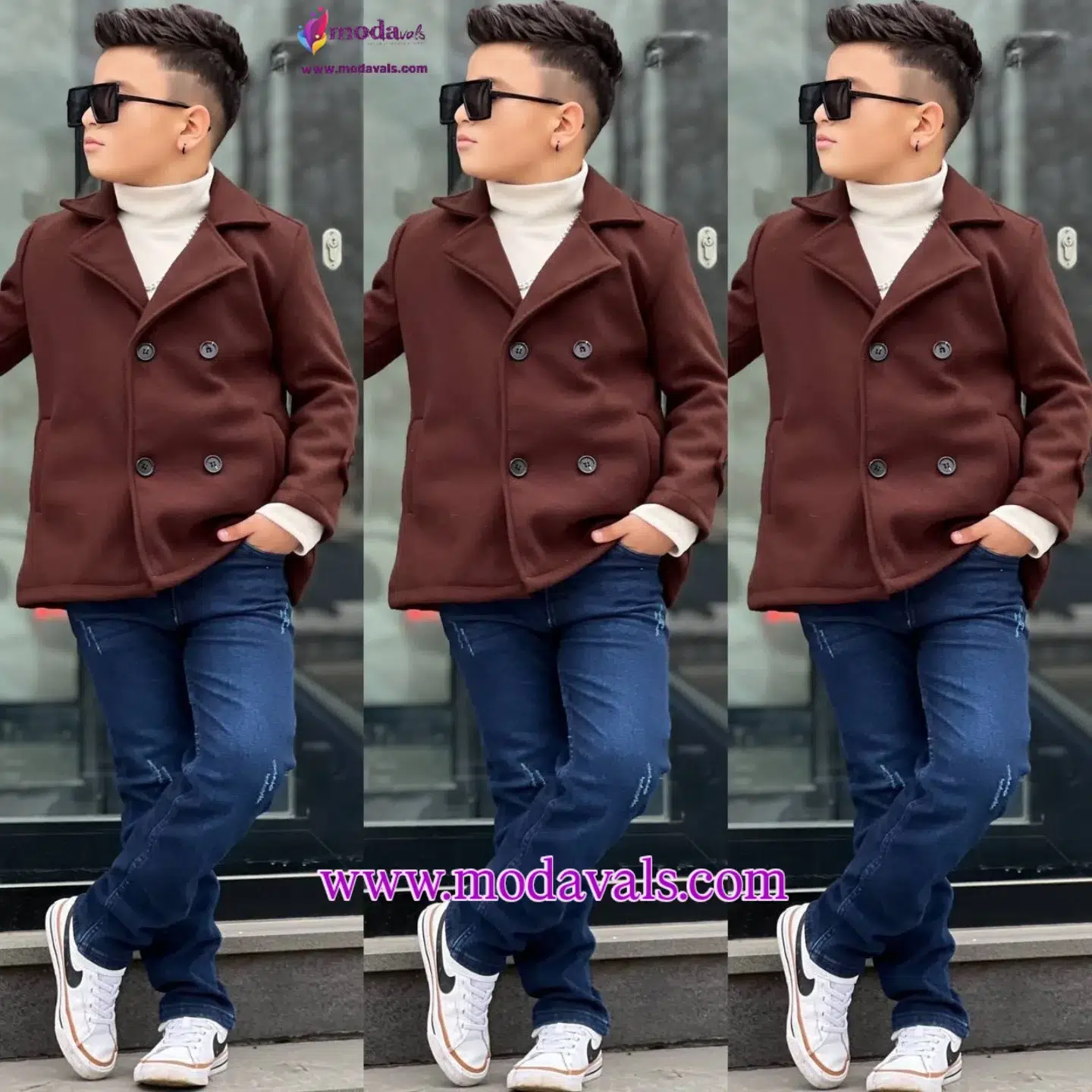 MODAVALS KAŞE KABAN BALIKÇI YAKA BADİ VE KOT PANTOLON 3 PARÇA ERKEK ÇOCUK KOMBİN
