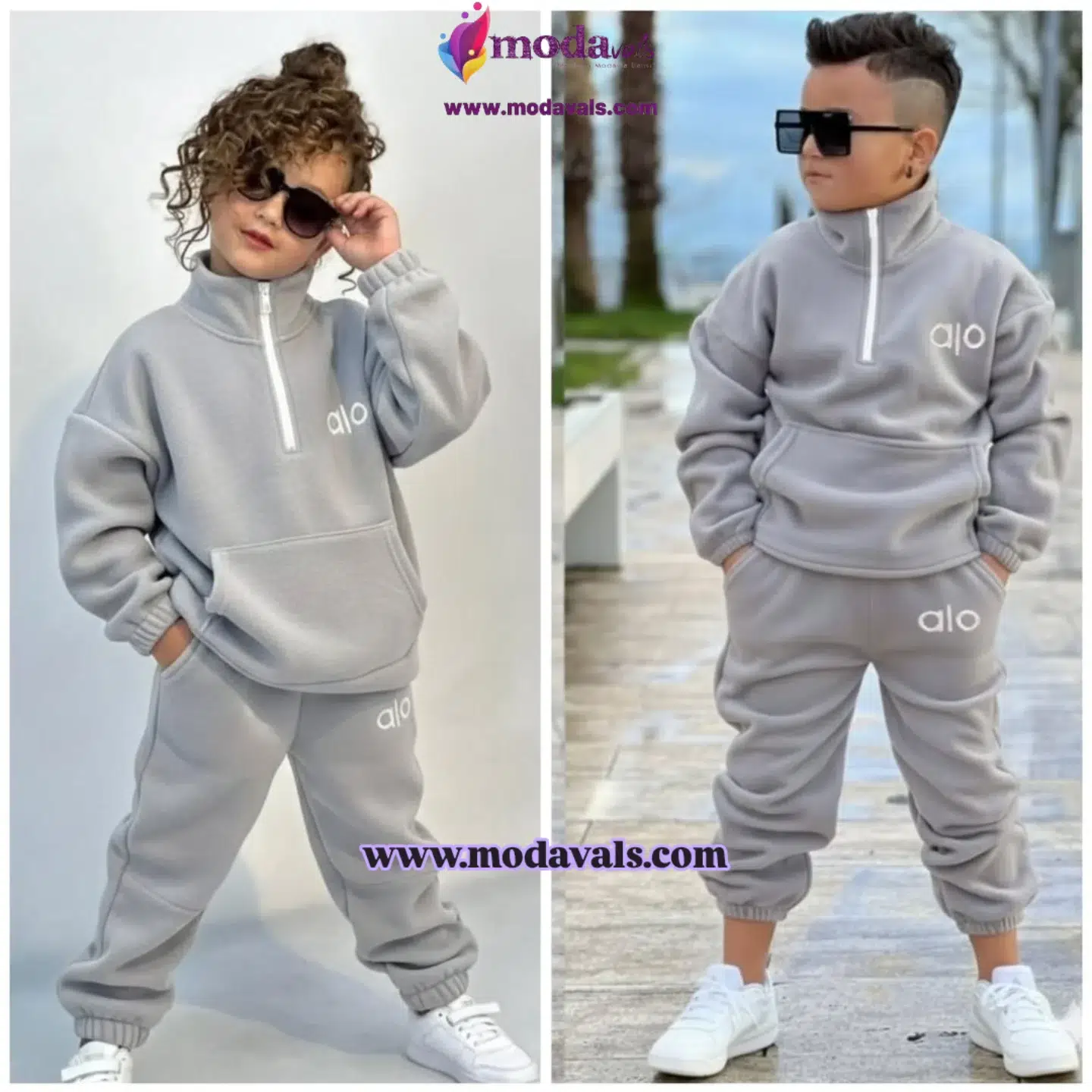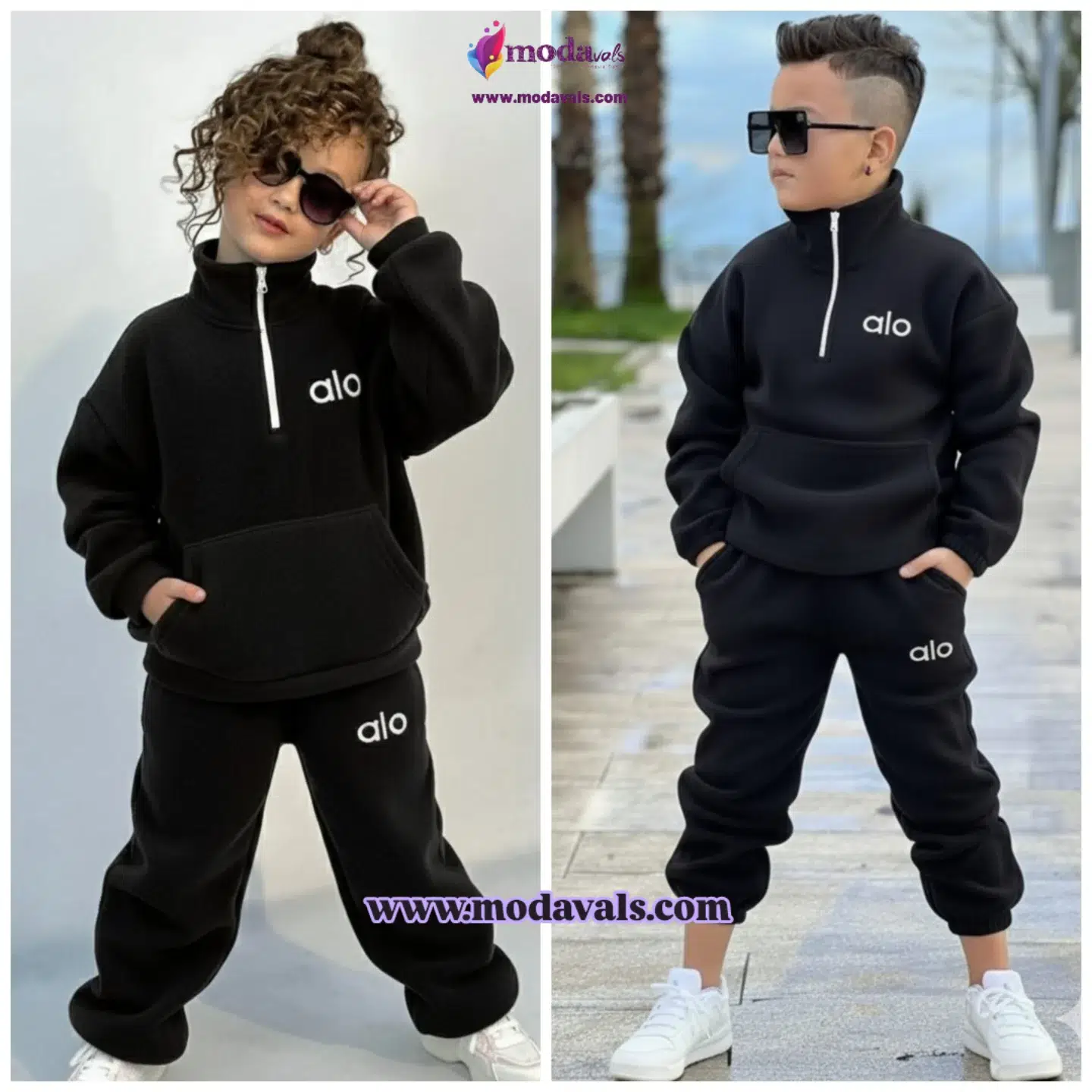MODAVALS KIZ ÇOCUK & ERKEK ÇOCUK ALO BASKILI TRAŞLI POFİDİK POLAR TAKIM